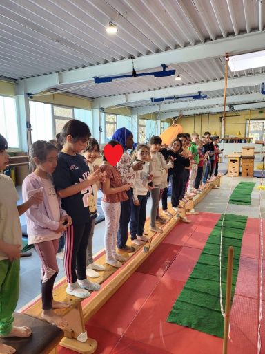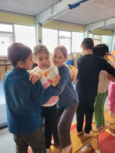 Auf den Fotos sieht man Klasse 1a. Die Kinder stärken hier nicht nur den Klassenzusammenhalt, sondern auch sich selbst.